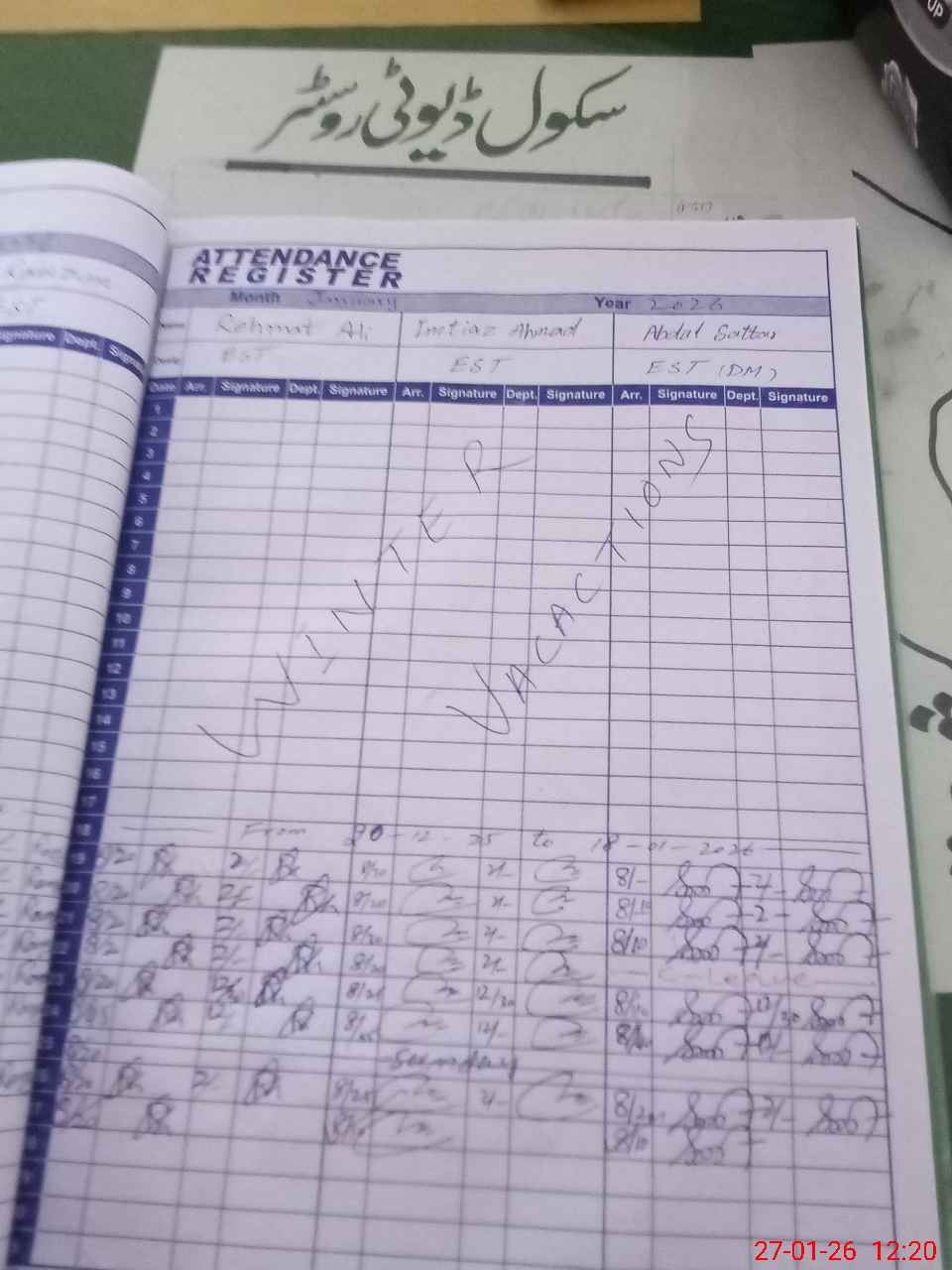 | CNIC | Full Name | Designation | R/C | Absence During Last Calender Month |