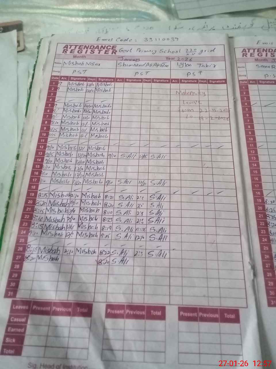 | 34**** | Ly**** Ta**** | PST Science/Maths | Regular | 31 | 0 | 0 | 31 | 0 | 0 | 0 | 0 | 0 | Maternity |
