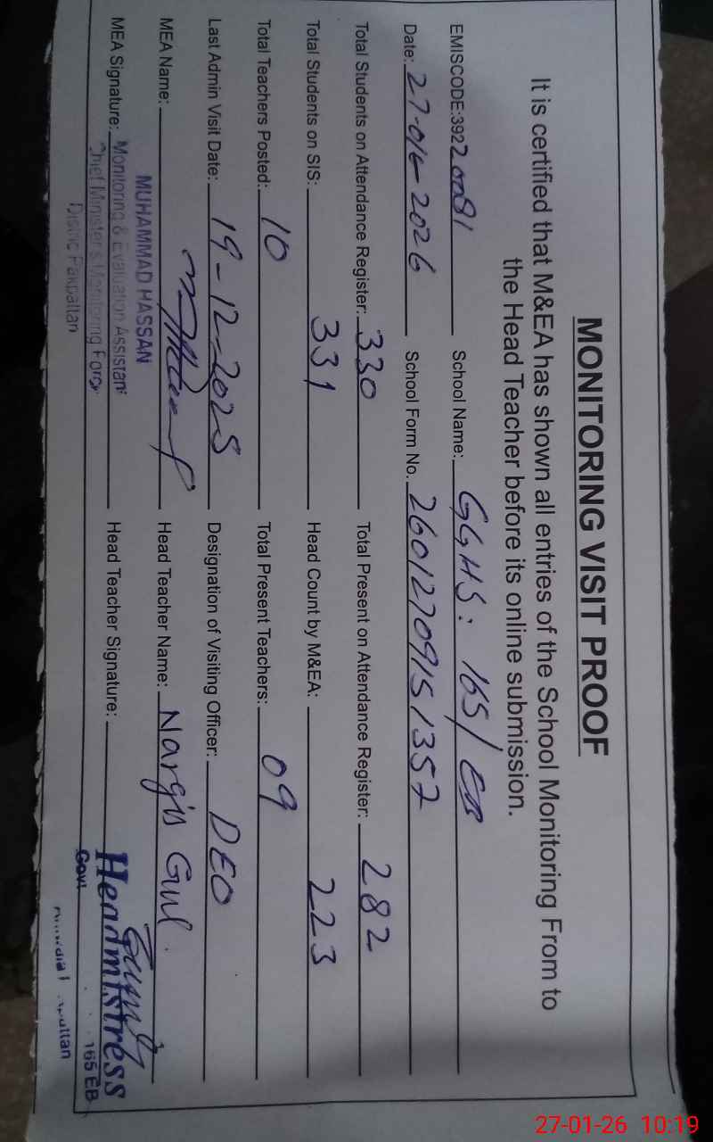| EMIS Code: 39220081 | Name of School: GGHS 165 EB P/O 163 EB | |||