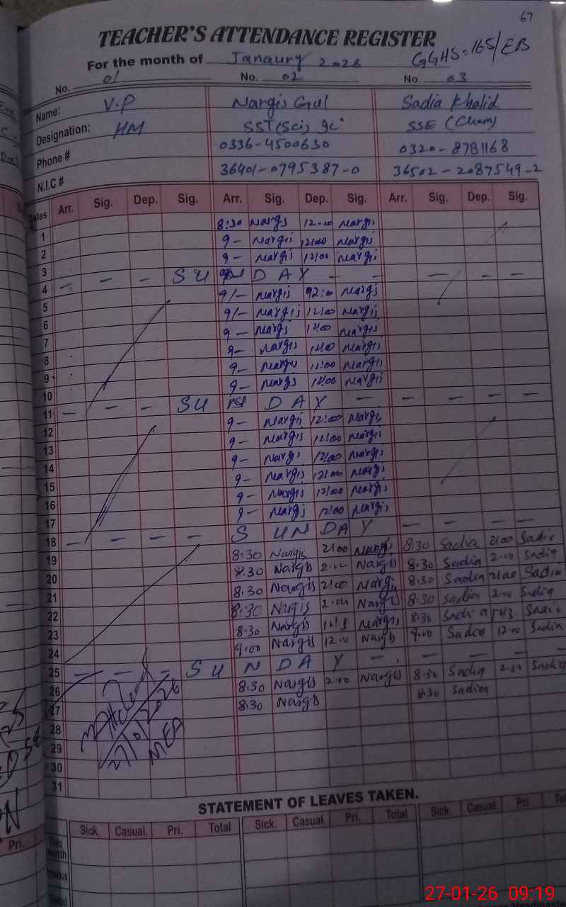 | Name: NA**** GU**** Designation: (School Headmaster's/Headmistress's) SST (SCIENCE) Phone/Cell Number: 03**** |