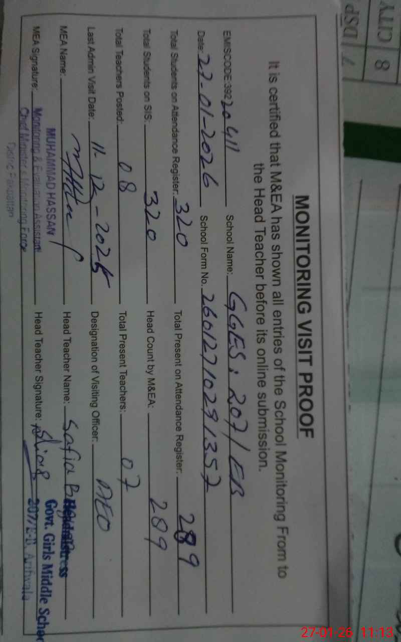| Attendance Register | Head Teacher | MEA with School | Visit Proof |
