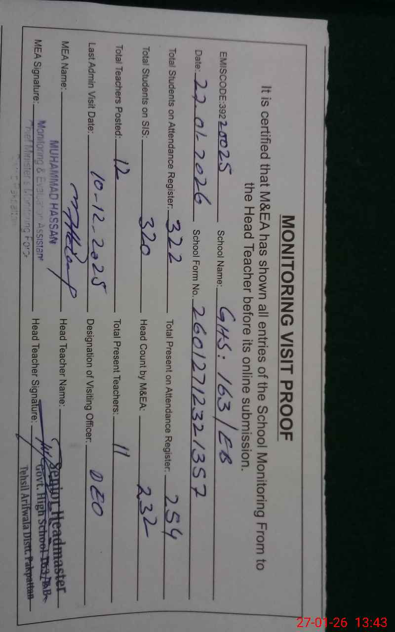 | EMIS Code: 39220025 | Name of School: GHS 163/EB | |||