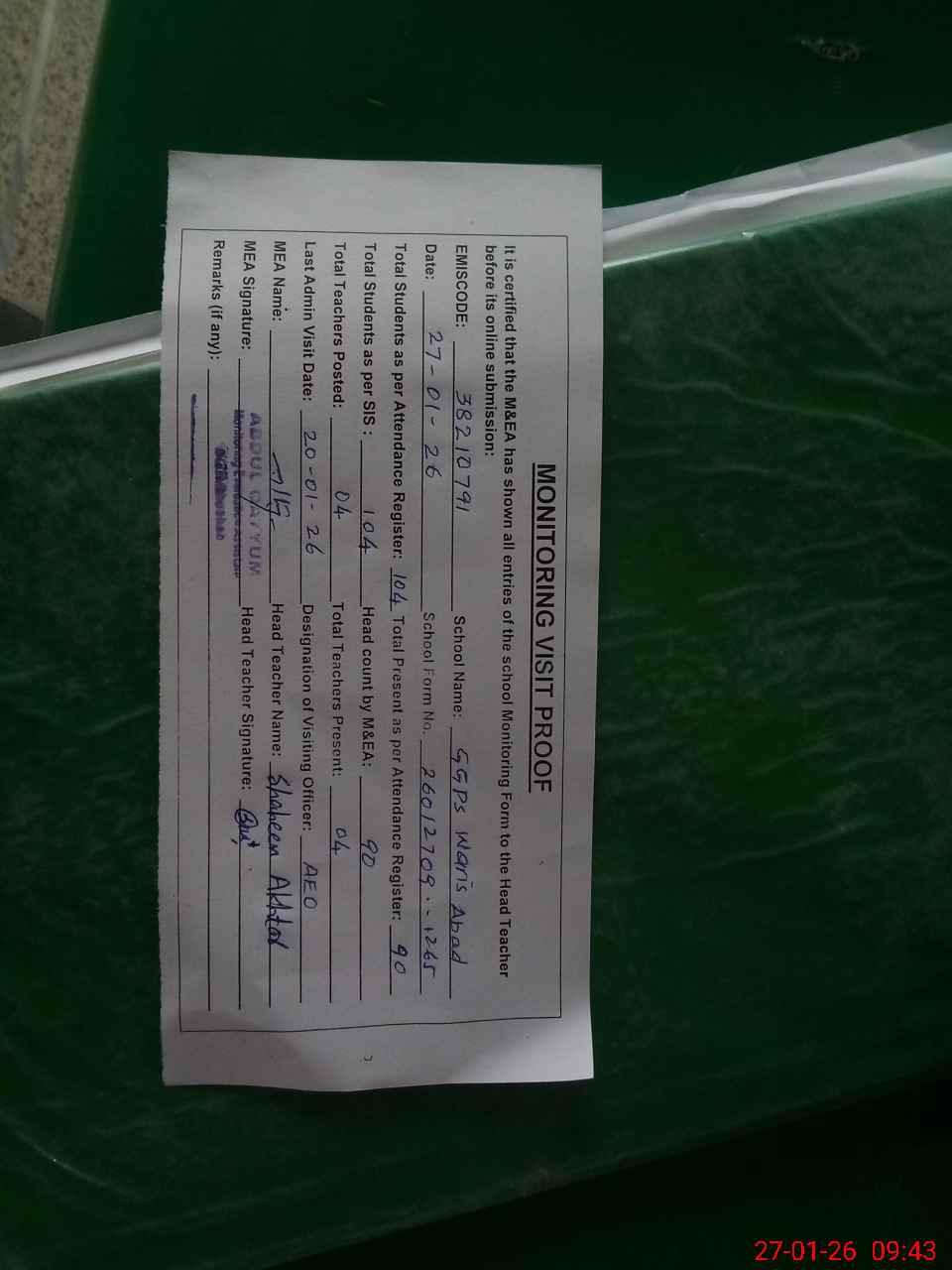 | EMIS Code: 38210791 | Name of School: GGPS WARIS ABAD | |||