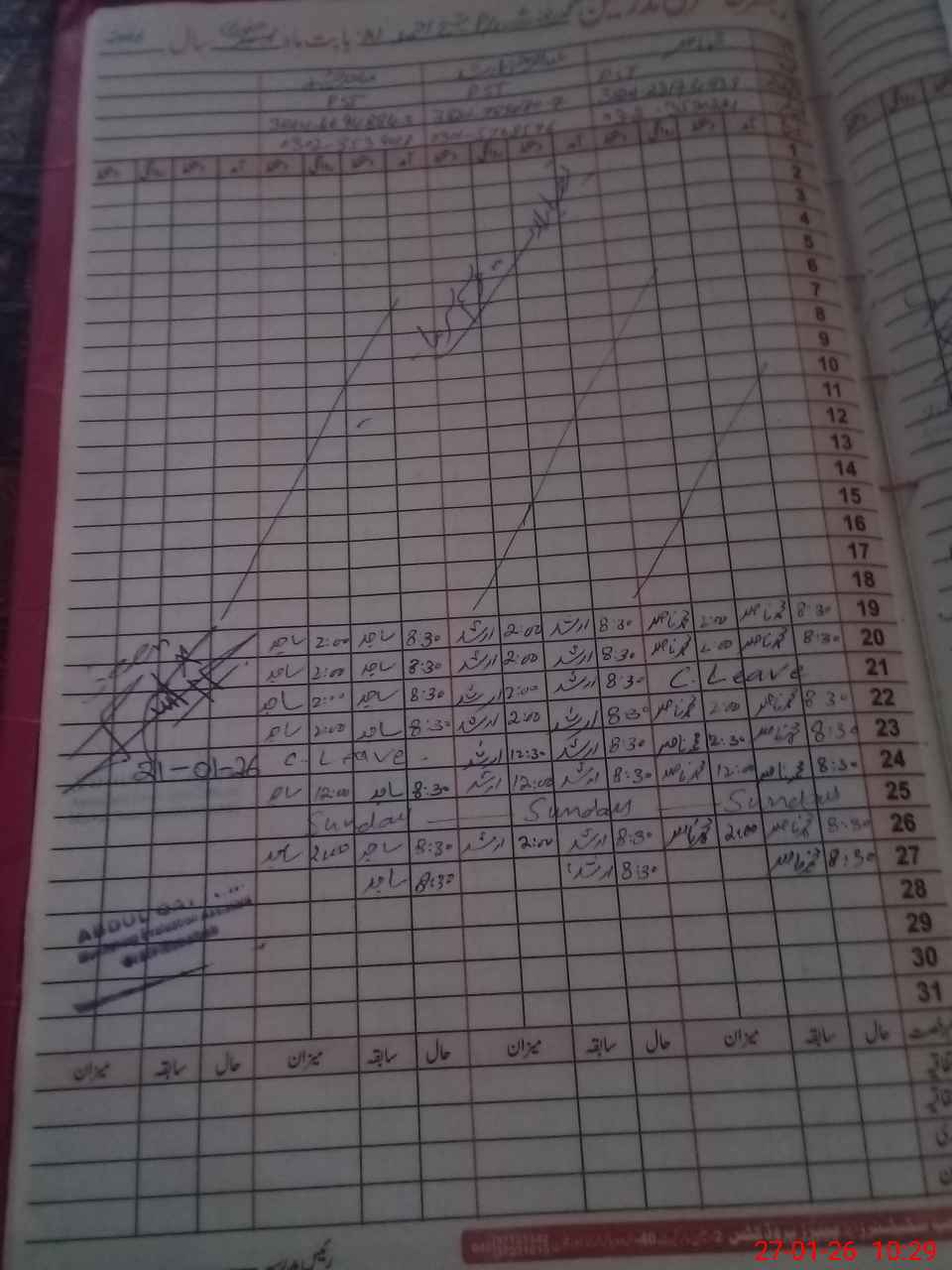 | CNIC | Full Name | Designation | R/C | Absence During Last Calender Month |