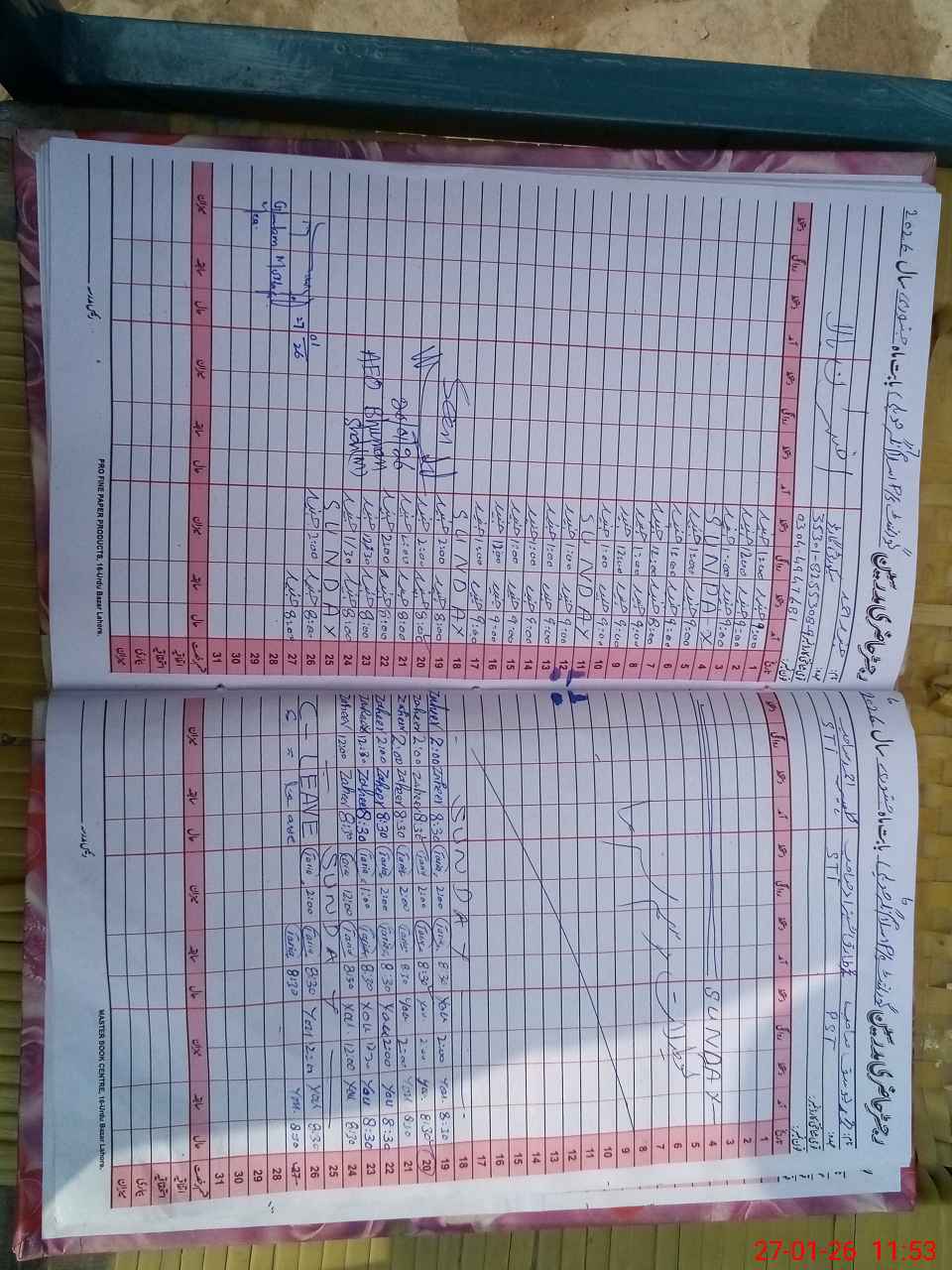 | CNIC | Full Name | Designation | R/C | Absence During Last Calender Month |