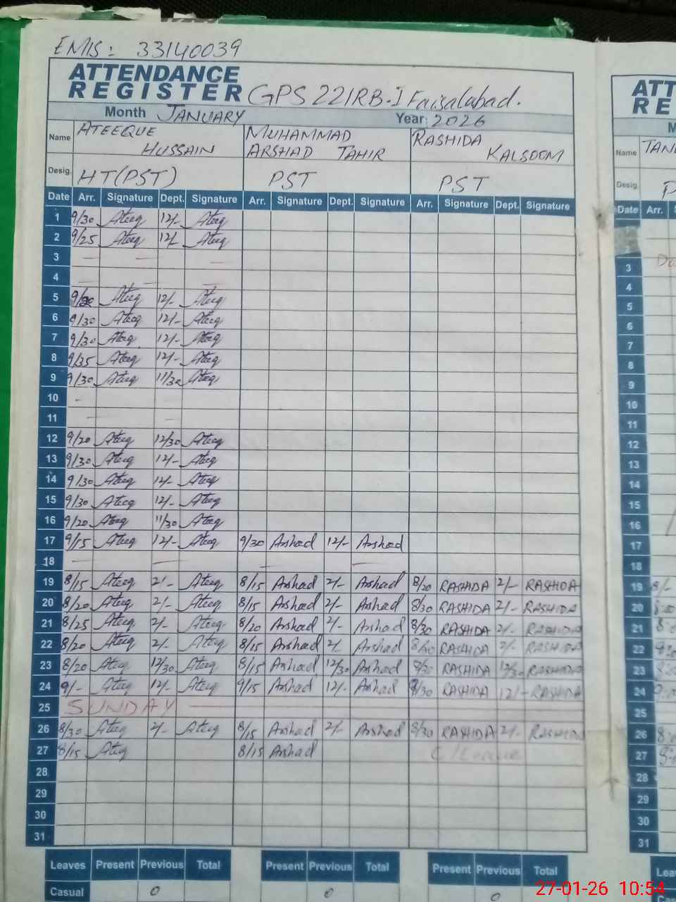 | 33**** | Ra**** Ka**** | PST Science/Maths | Regular | 0 | 0 | 0 | 0 | 0 | 0 | 0 | 0 | 0 | Casual |