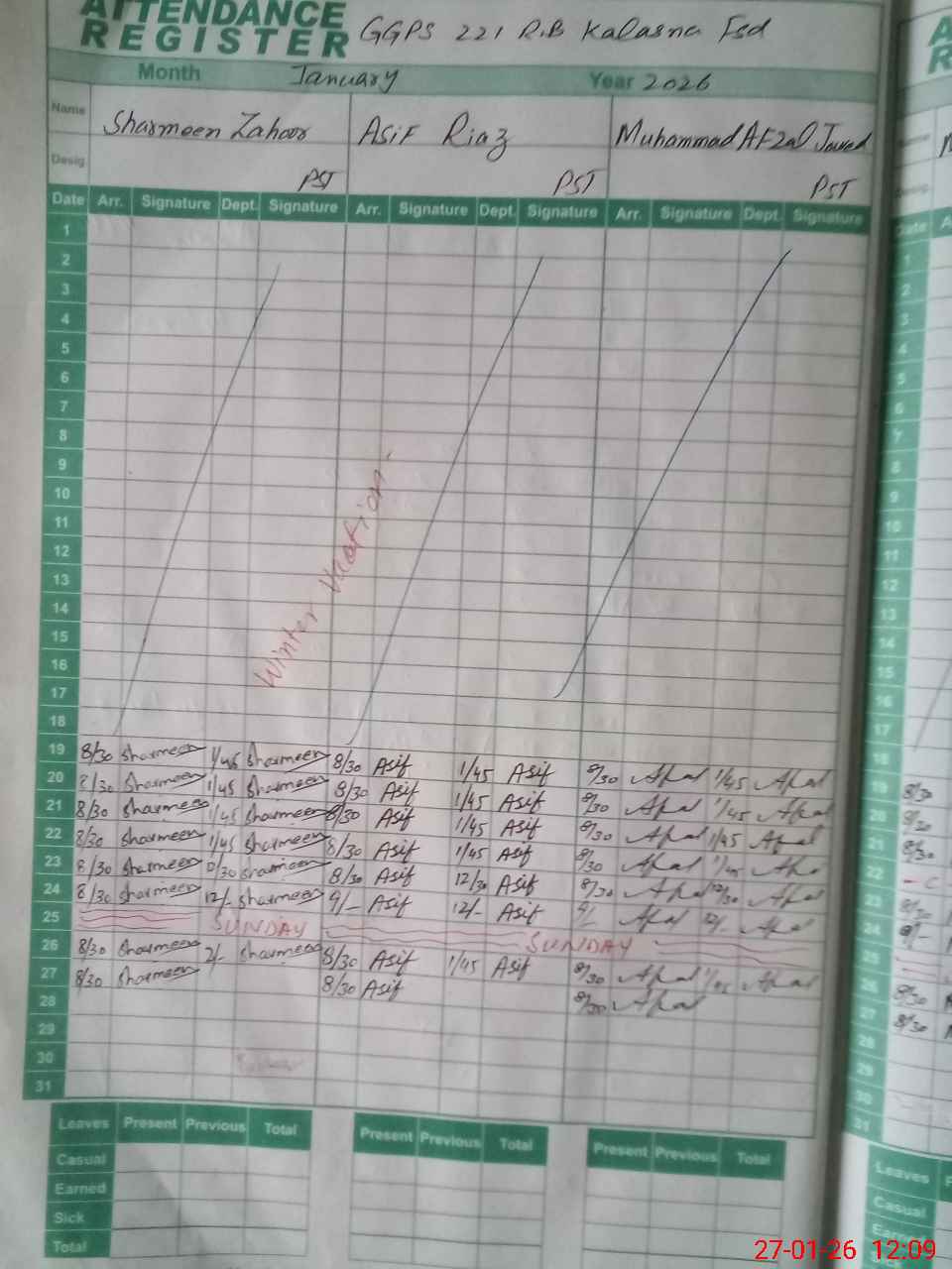 | CNIC | Full Name | Designation | R/C | Absence During Last Calender Month |
