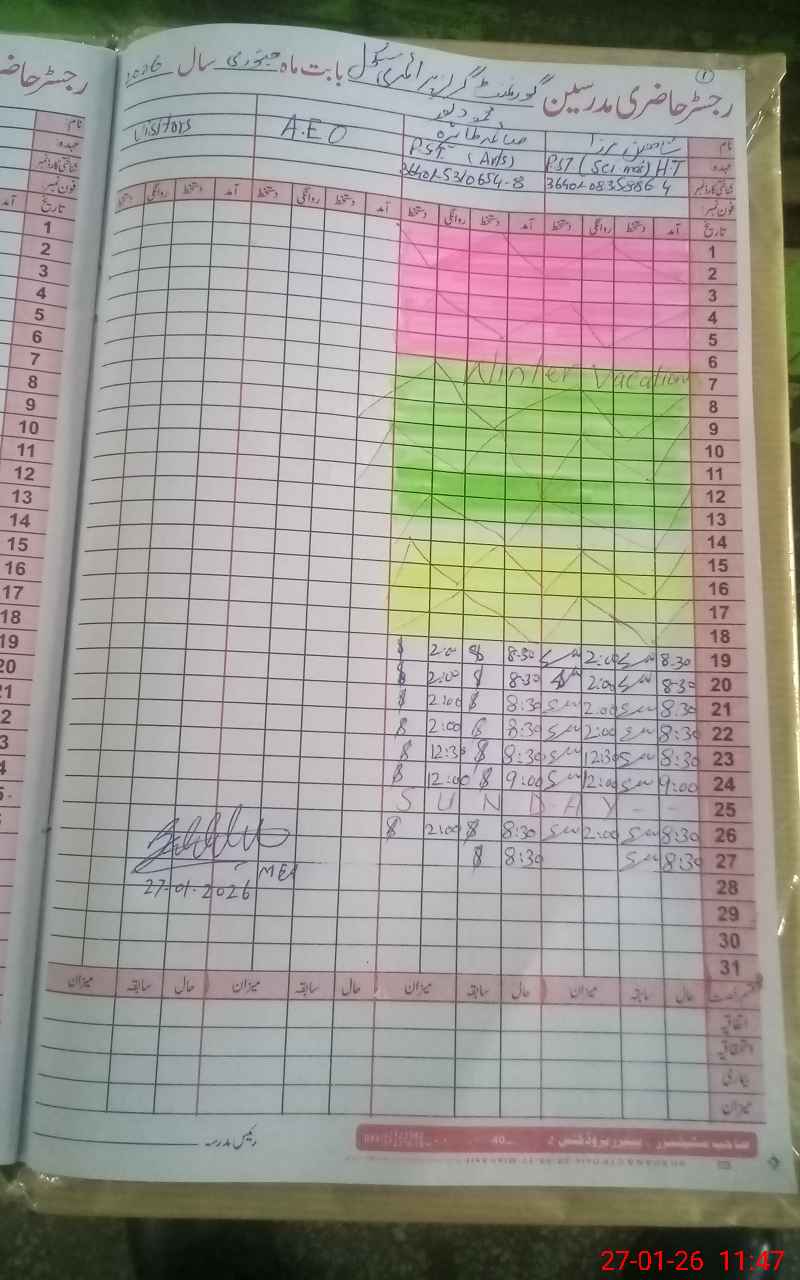 | Name: SH**** MI**** Designation: (School Headmaster's/Headmistress's) PST Phone/Cell Number: 03**** |