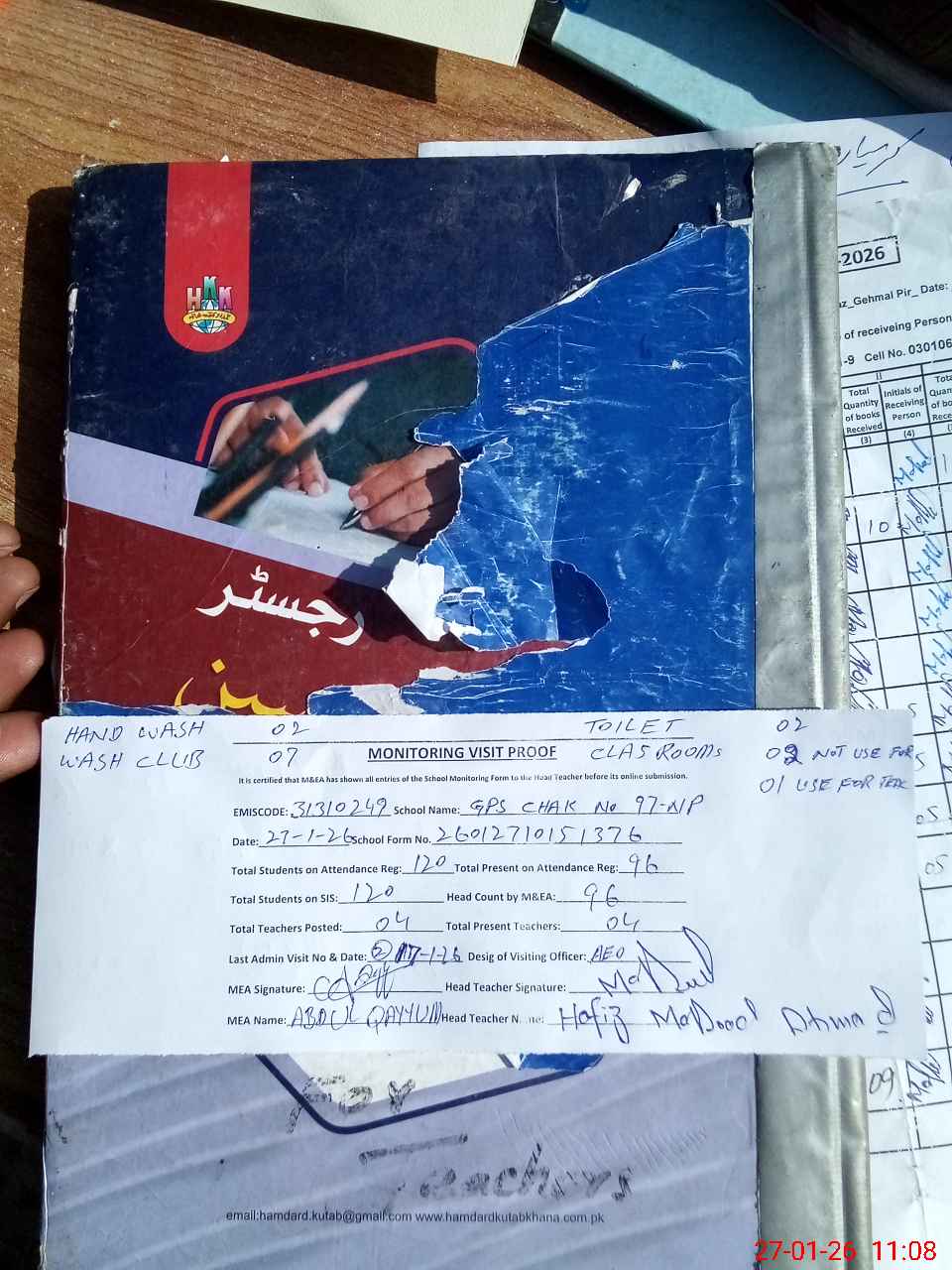 | Attendance Register | Head Teacher | MEA with School | Visit Proof |