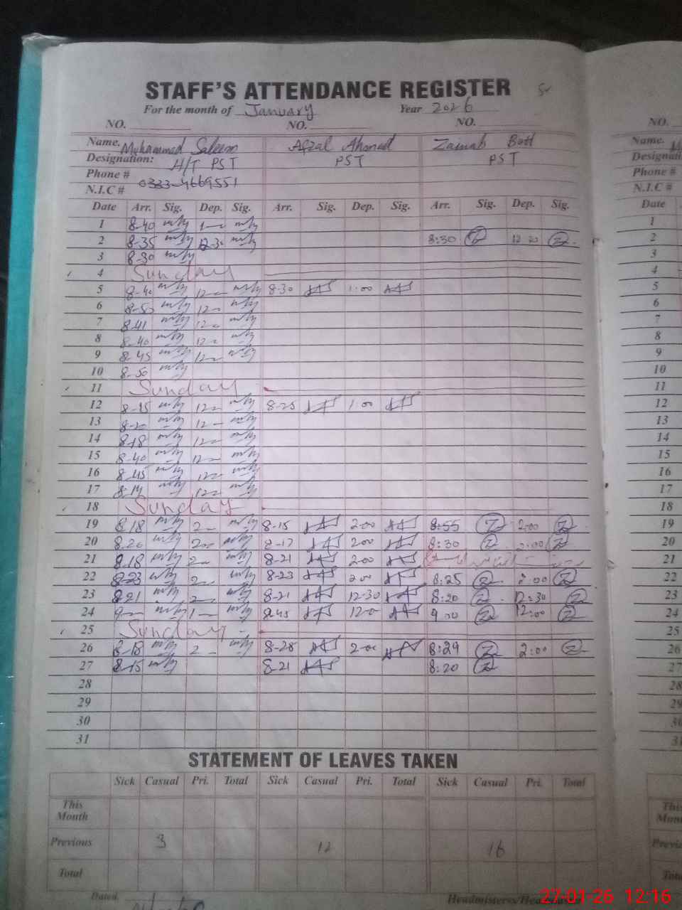 | Name: MU**** SA**** Designation: (School Headmaster's/Headmistress's) PST Phone/Cell Number: 03**** |