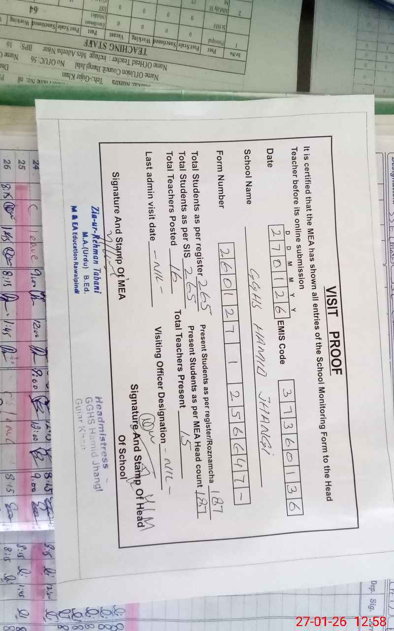 | EMIS Code: 37360136 | Name of School: GGHS HAMID JHANGI | |||