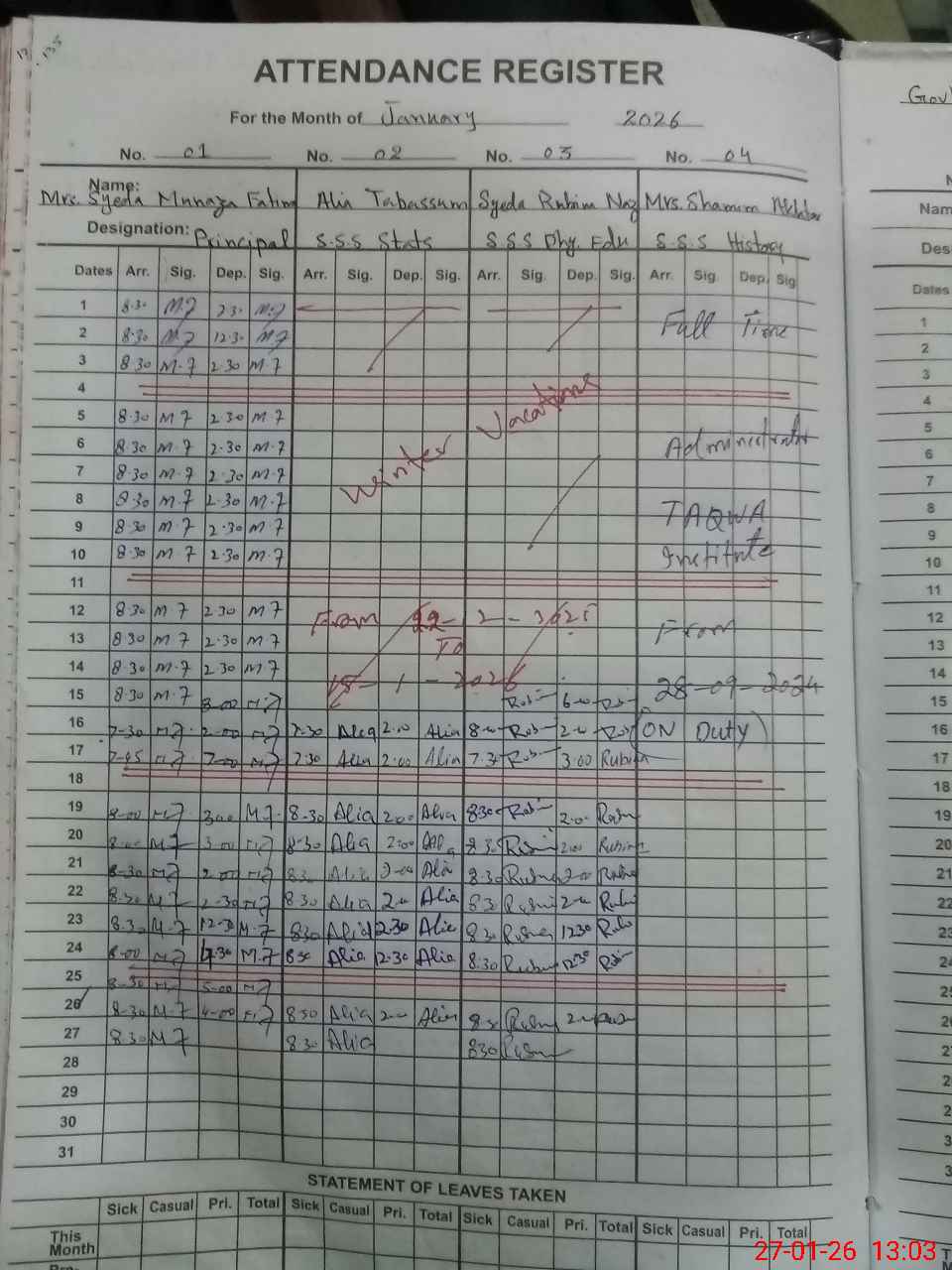 | 35**** | Am**** Mu**** | SST Science | Regular | 1 | 0 | 0 | 0 | 0 | 0 | 0 | 0 | 1 | Casual |
