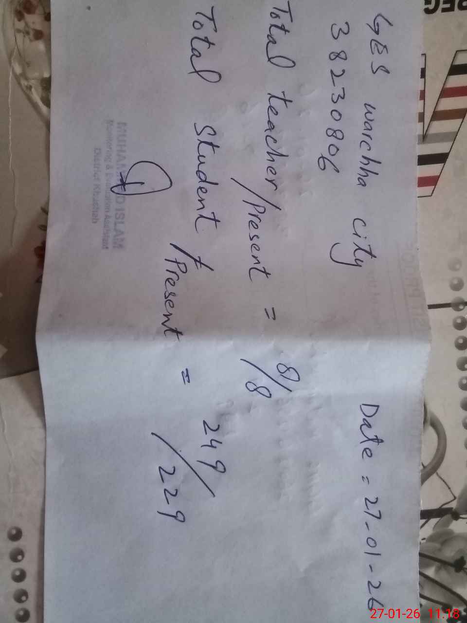 | Remarks (Use Separate Page if Required): Dy DEO visited school on 31 December 2025 students strength on sis 249 | |||||