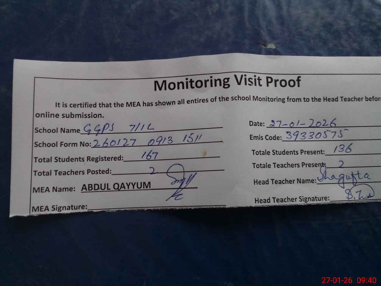 | EMIS Code: 39330575 | Name of School: GGPS 7-1L | |||