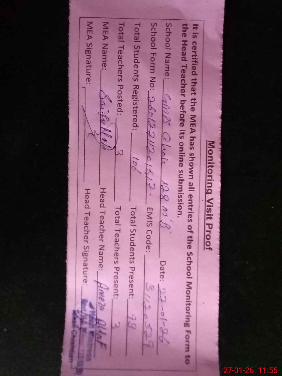 | EMIS Code: 31120529 | Name of School: GMPS CHAK NO. 128/MB | |||