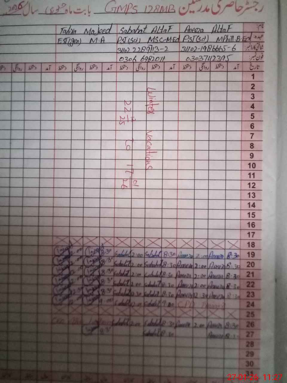 | Name: AN**** AL**** Designation: (School Headmaster's/Headmistress's) PST Phone/Cell Number: 03**** |