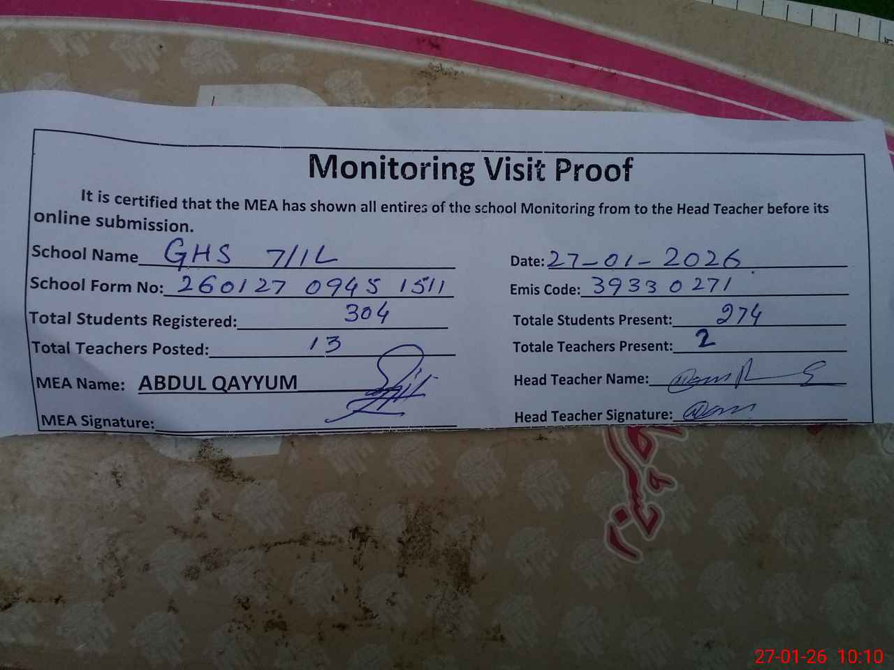 | EMIS Code: 39330271 | Name of School: GHS CHAK NO 7/1.L | |||