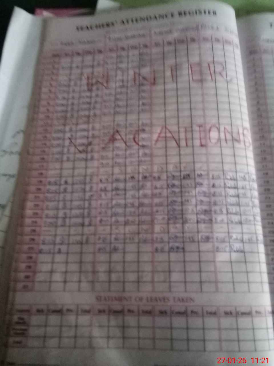 | Leave | Duty | Absent | Maternity | Medical | Ex- Pak |
