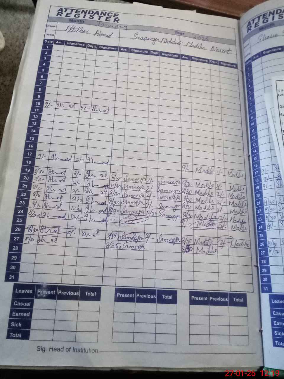 | 33**** | Ne**** Sh**** | PST Arts | Regular | 0 | 0 | 0 | 0 | 0 | 0 | 0 | 0 | 0 | Casual |
