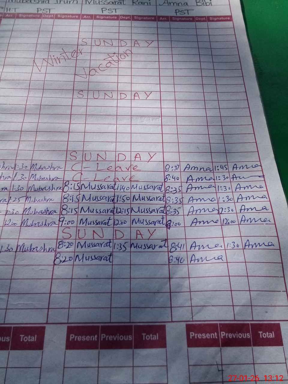 | CNIC | Full Name | Designation | R/C | Absence During Last Calender Month |