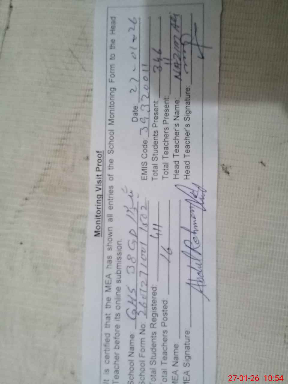 | EMIS Code: 39320011 | Name of School: GHS 38/G.D YOUNG PUR | |||