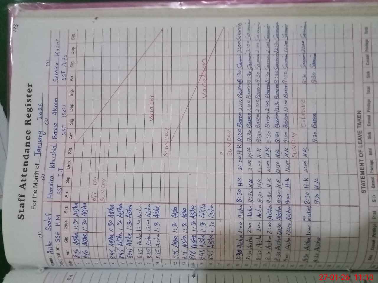 | No. of Students Present - Female | 0 | 0 | 57 | 32 | 42 | 65 | 69 | 60 | 86 | 95 | 68 | 60 | 30 | 664 | ||