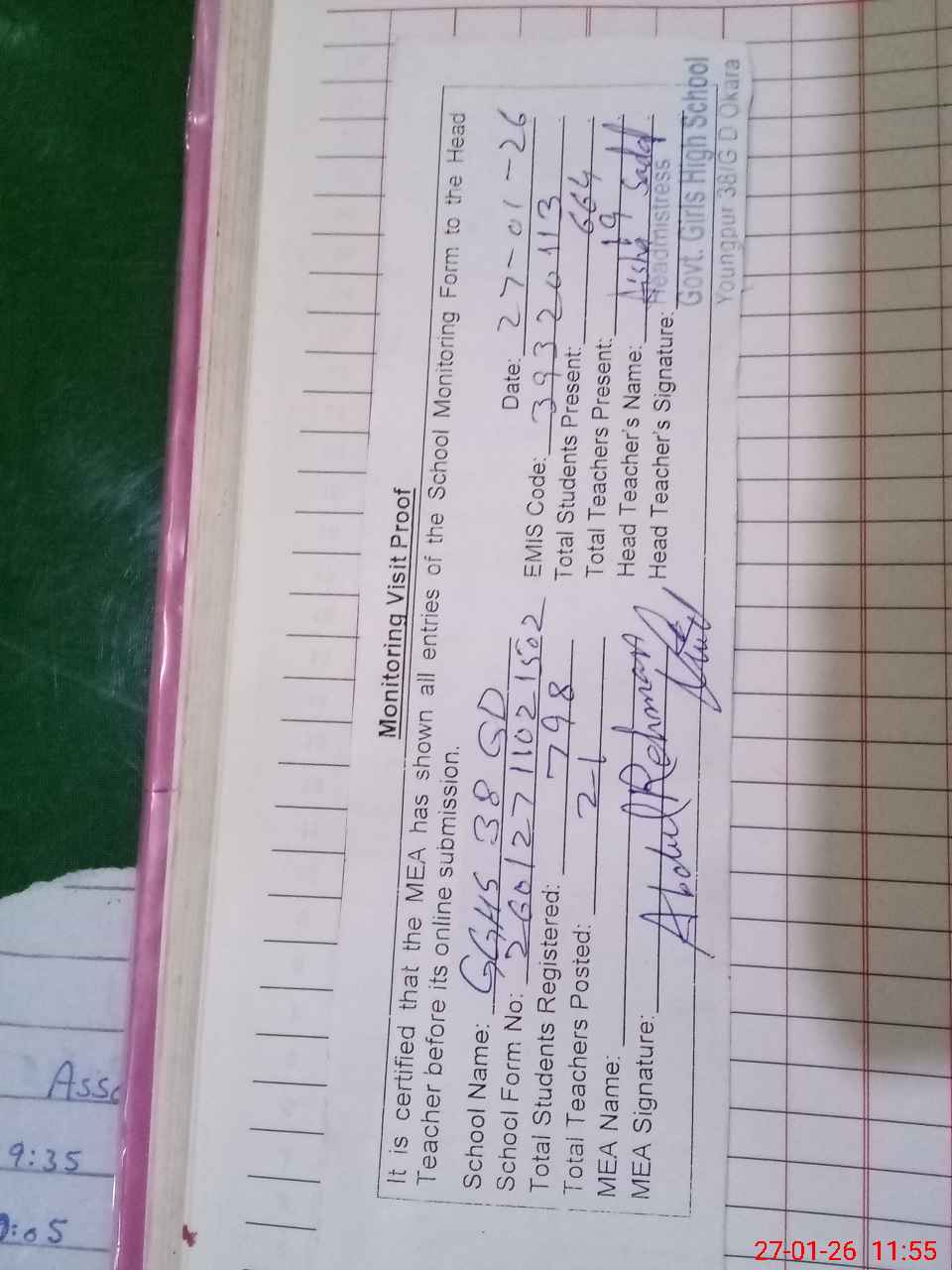 | EMIS Code: 39320113 | Name of School: GGHS 38/G.D YOUNG PUR | |||