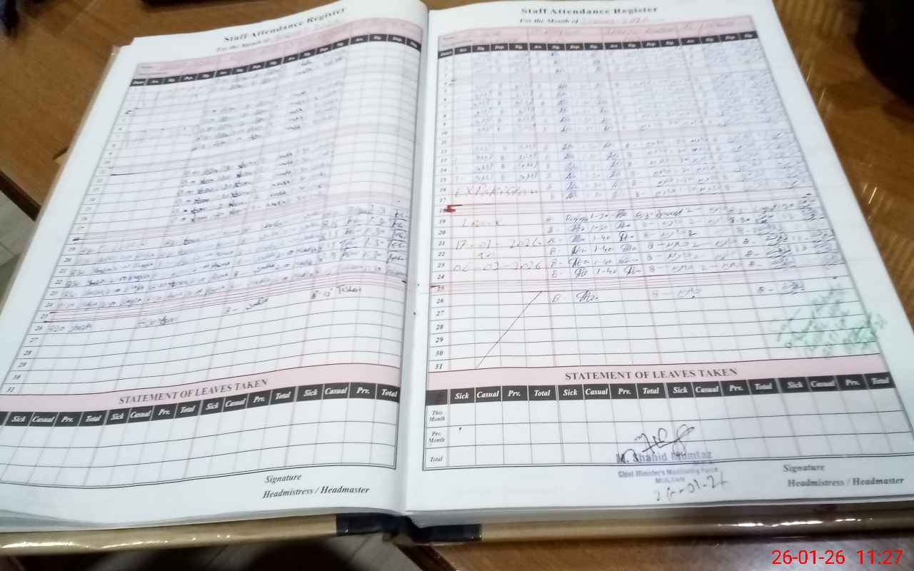 | 36**** | Ra**** Qu**** | Sr. Headmaster | Regular | 1 | 0 | 0 | 0 | 0 | 0 | 0 | 0 | 1 | Casual |