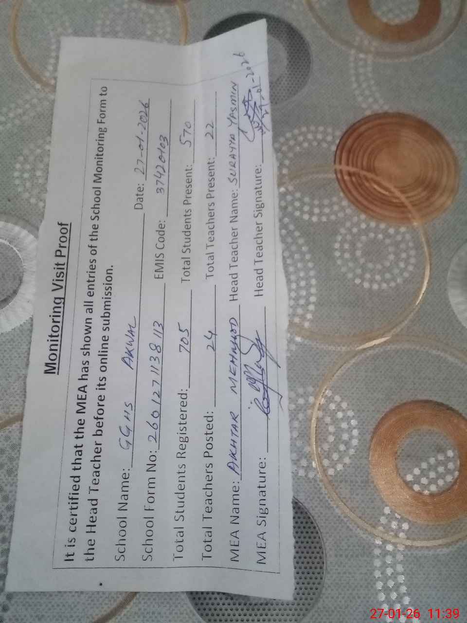| EMIS Code: 37420103 | Name of School: GGHS AKWAL | |||