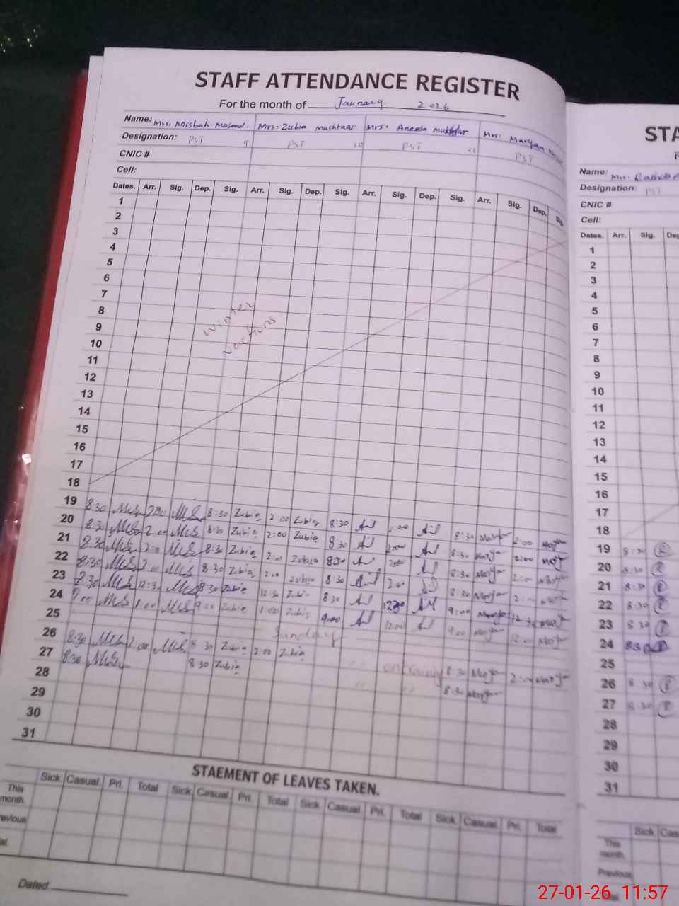 | 35**** | Sa**** Di**** | SST Science | Regular | 2 | 0 | 0 | 0 | 0 | 0 | 0 | 0 | 2 | Casual |