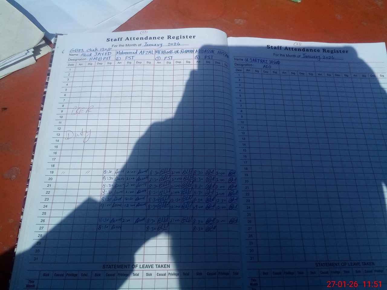 | Name: Ab**** Ja**** Designation: (School Headmaster's/Headmistress's) PST/PTC/JV Phone/Cell Number: 03**** |