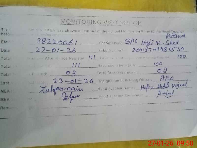| EMIS Code: 38220061 | Name of School: GPS MOHALLA HAJI MUHAMMAD SHER BILAND | |||