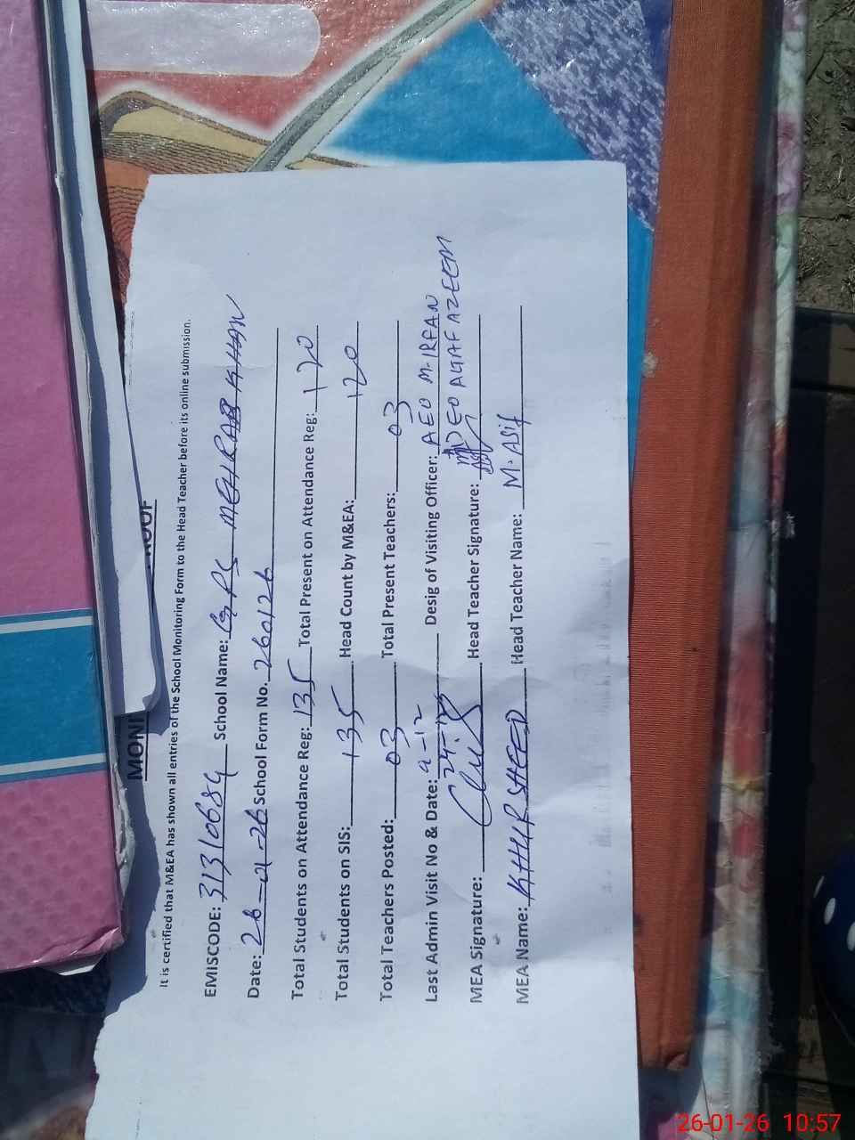 | EMIS Code: 31310684 | Name of School: GPS MEHRAB KHAN | |||