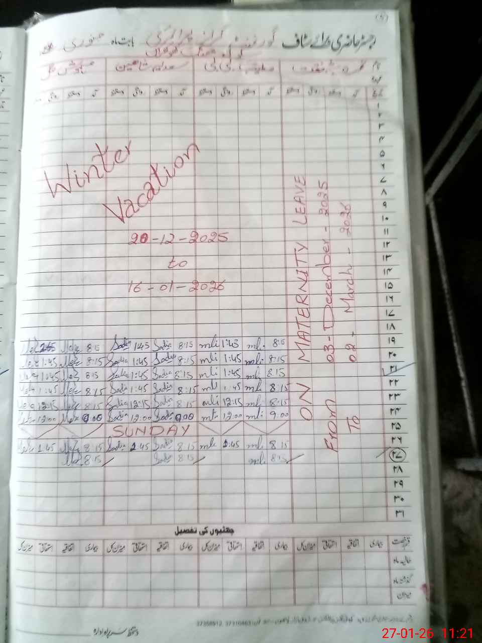 | 37**** | Ni**** Sh**** | PST Science/Maths | Regular | 29 | 0 | 0 | 29 | 0 | 0 | 0 | 0 | 0 | Maternity |