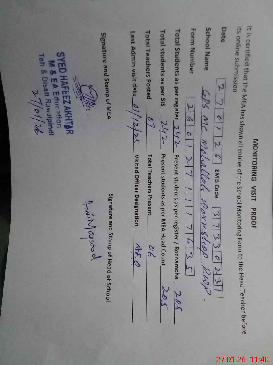 | EMIS Code: 37330231 | Name of School: GPS MC MOHALLAH WORKSHOP RWP | |||