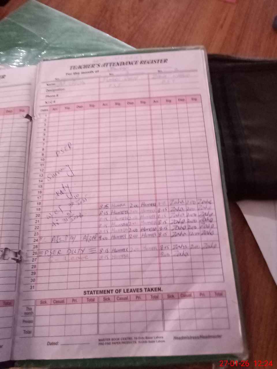| Leave | Duty | Absent | Maternity | Medical | Ex- Pak |