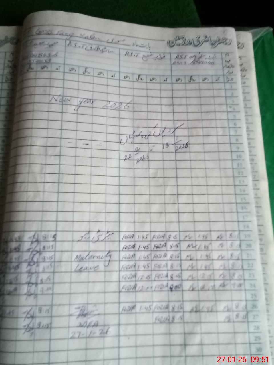 | Leave | Duty | Absent | Maternity | Medical | Ex- Pak |