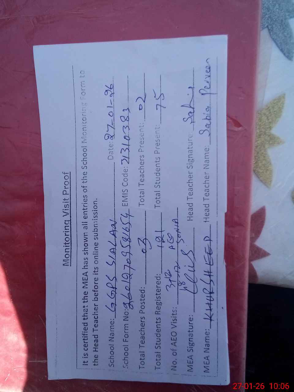 | EMIS Code: 31310383 | Name of School: GGPS SIALAN | |||