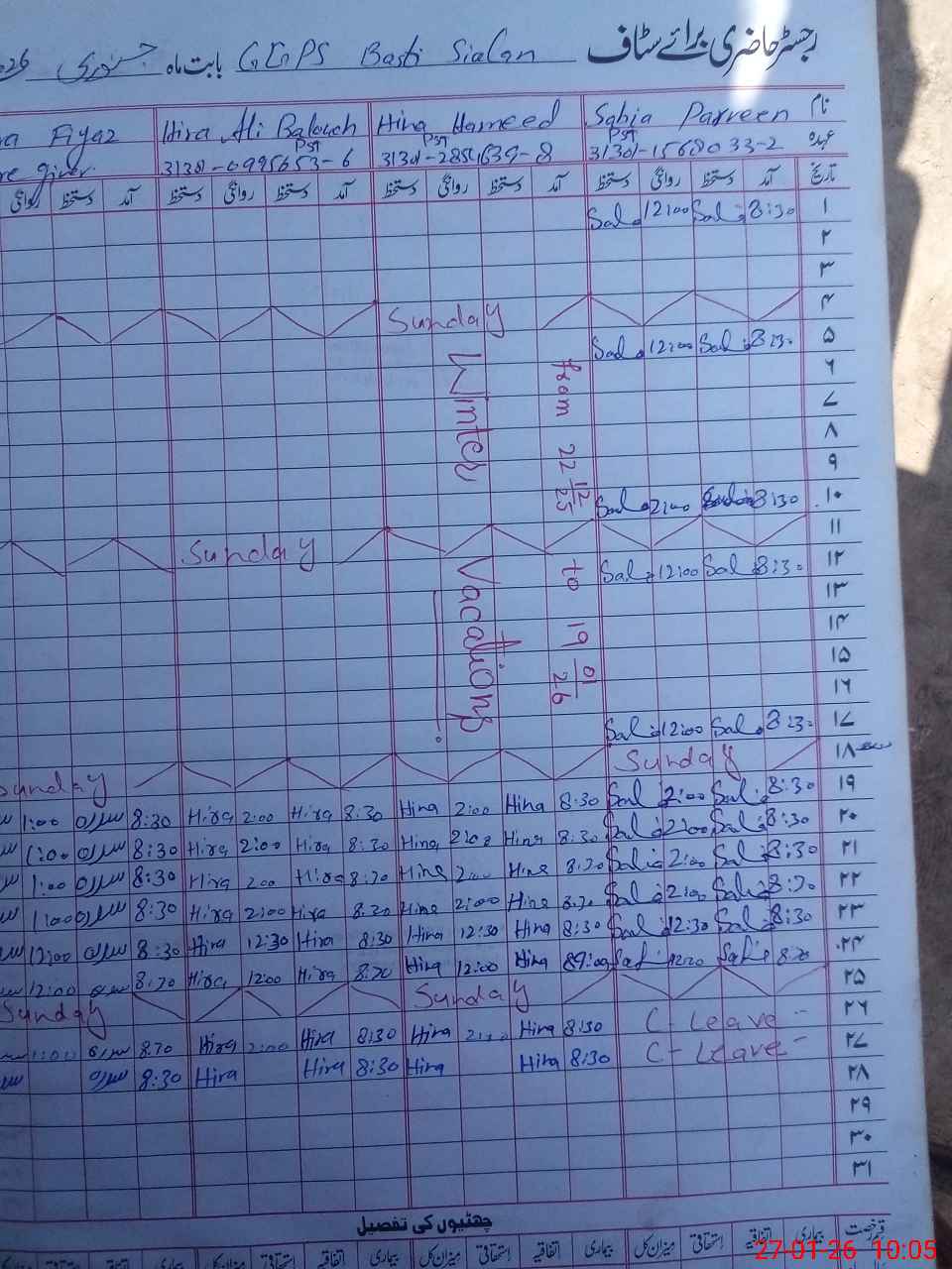 | 31**** | Sa**** Pa**** | PST Arts | Regular | 0 | 0 | 0 | 0 | 0 | 0 | 0 | 0 | 0 | Casual |