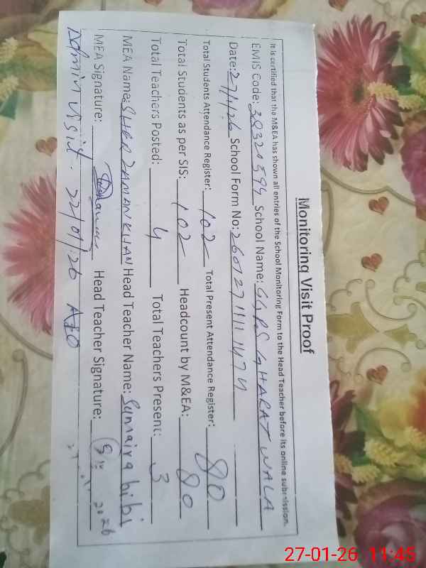 | Attendance Register | Head Teacher | MEA with School | Visit Proof |