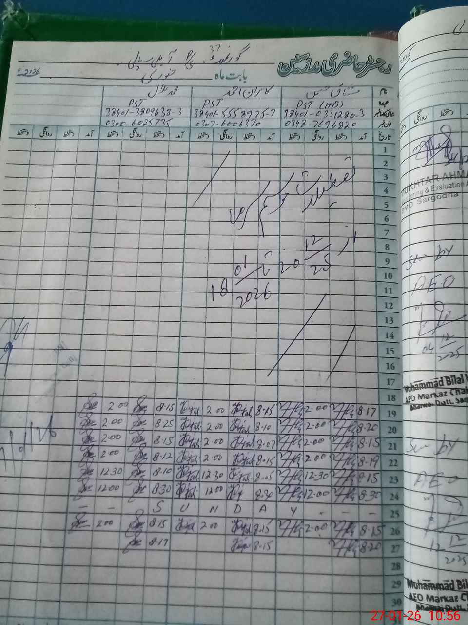 | Name: MU**** HU**** Designation: (School Headmaster's/Headmistress's) PST Phone/Cell Number: 03**** |