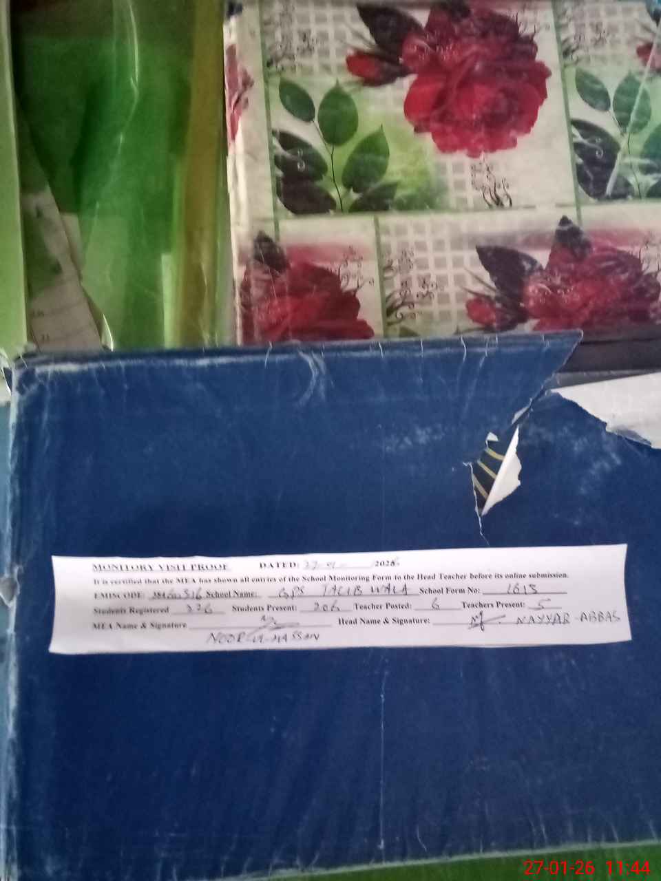 | Attendance Register | Head Teacher | MEA with School | Visit Proof |