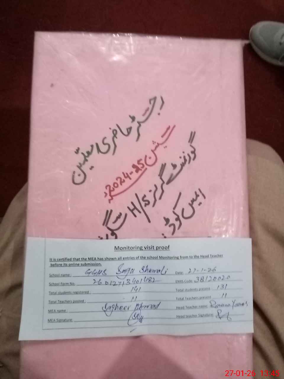 | Attendance Register | Head Teacher | MEA with School | Visit Proof |