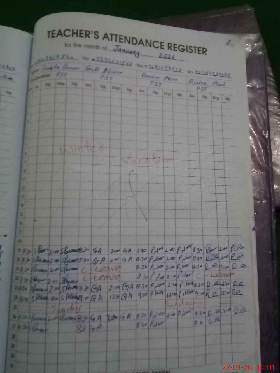 | CNIC | Full Name | Designation | R/C | Absence During Last Calender Month |