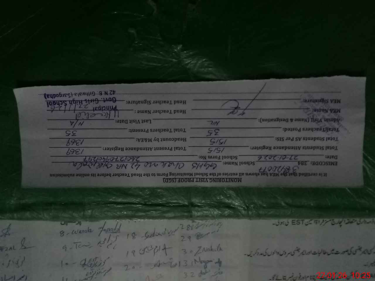 | EMIS Code: 38420077 | Name of School: GGHS CHAK NO.42 NB GILL WALA | |||