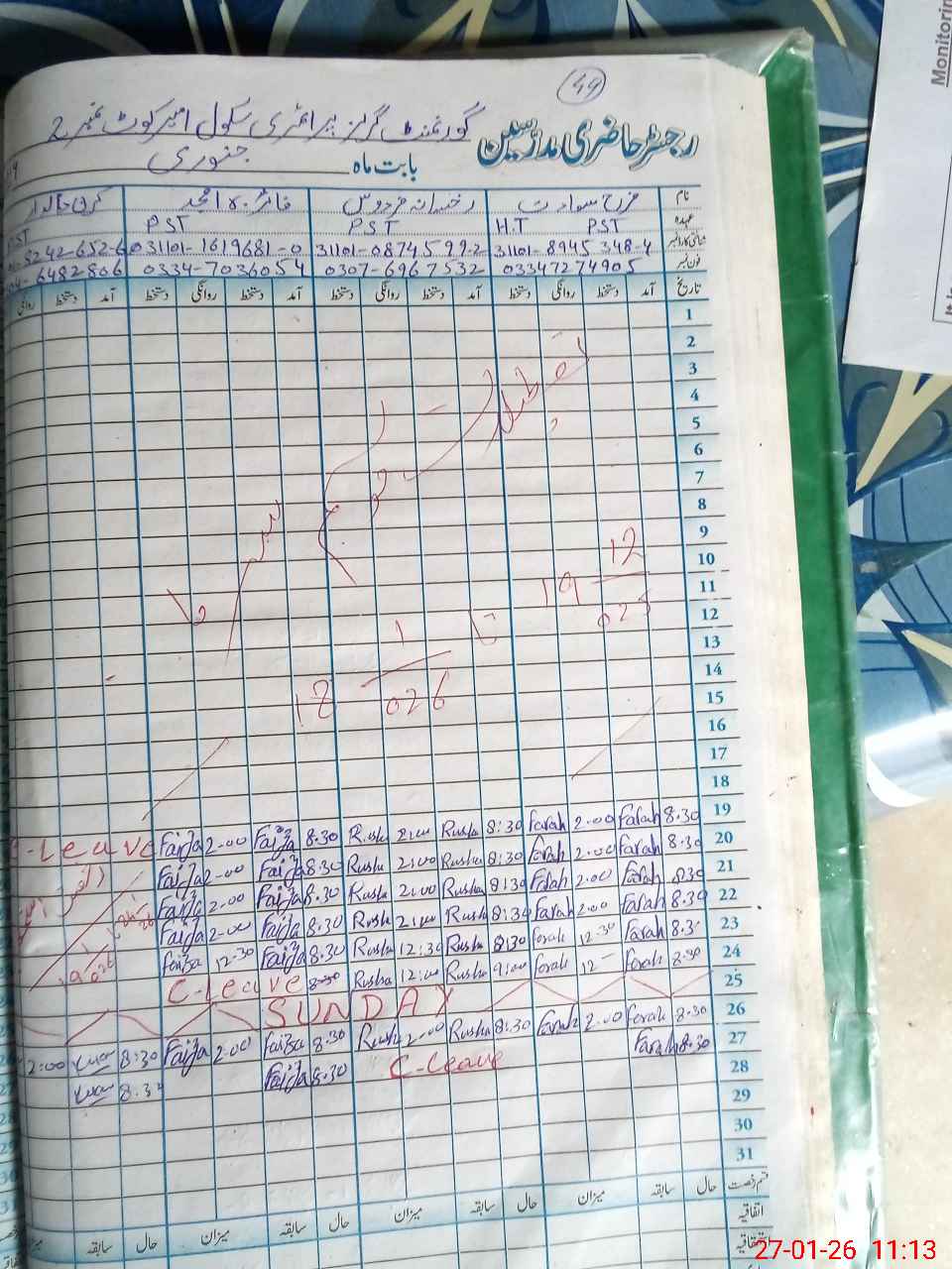 | Name: FA**** SA**** Designation: (School Headmaster's/Headmistress's) PST Phone/Cell Number: 03**** |