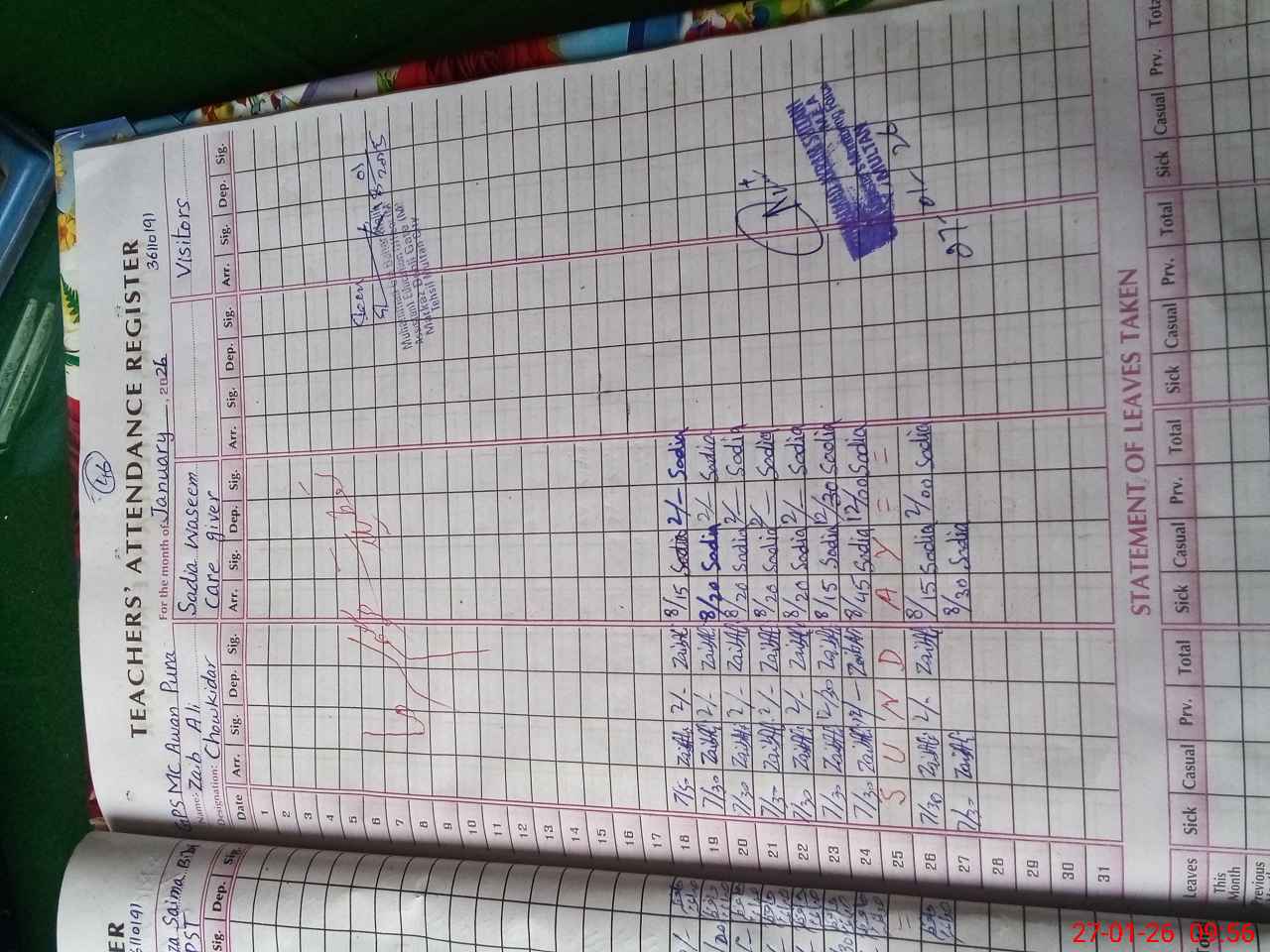 | Attendance Register | Head Teacher | MEA with School | Visit Proof |
