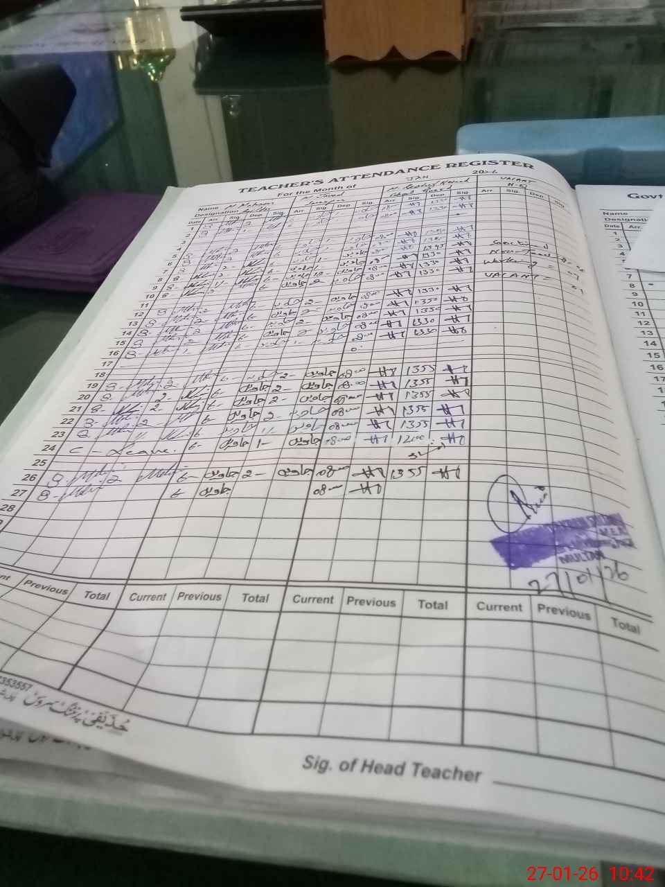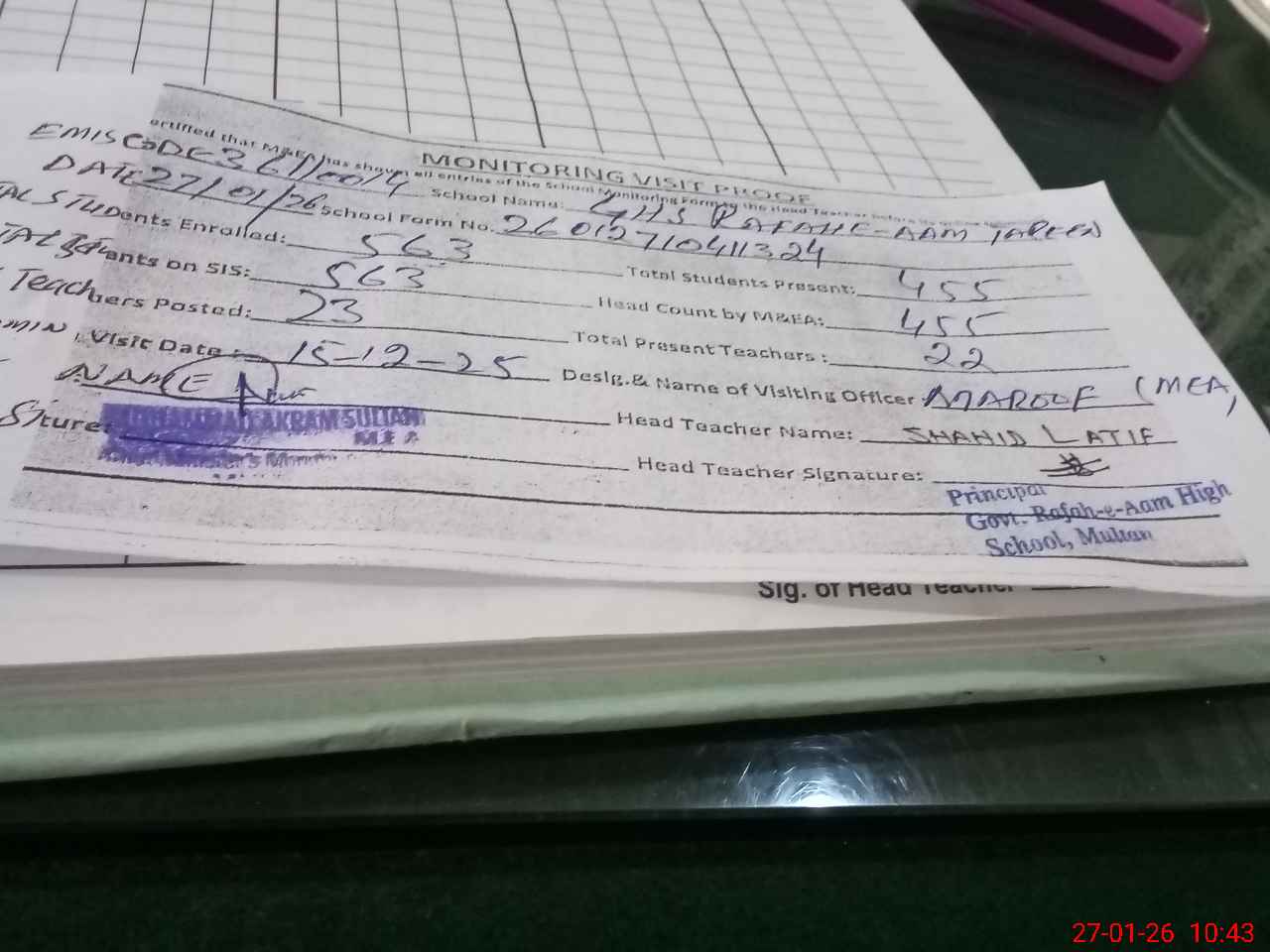 | Attendance Register | Head Teacher | MEA with School | Visit Proof |