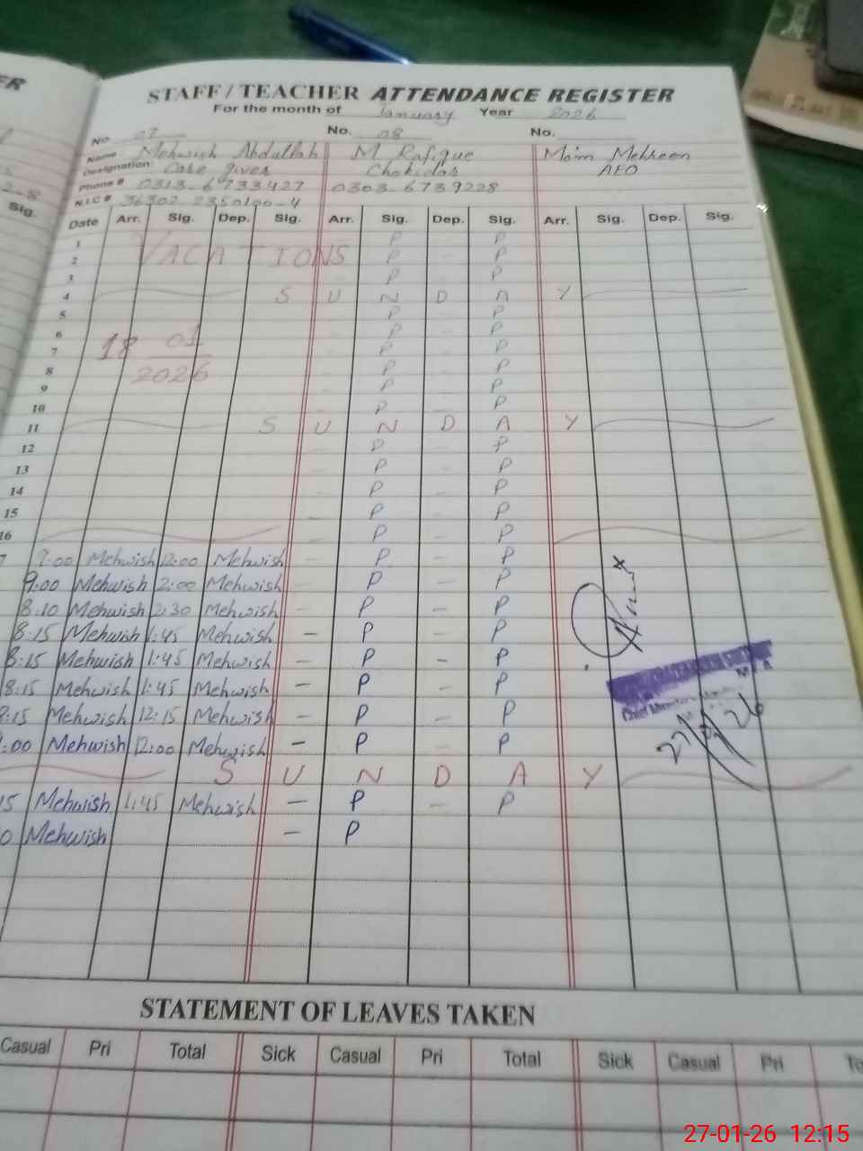 | 33**** | Sa**** An**** | PST Science/Maths | Regular | 0 | 0 | 0 | 0 | 0 | 0 | 0 | 0 | 0 | Maternity |