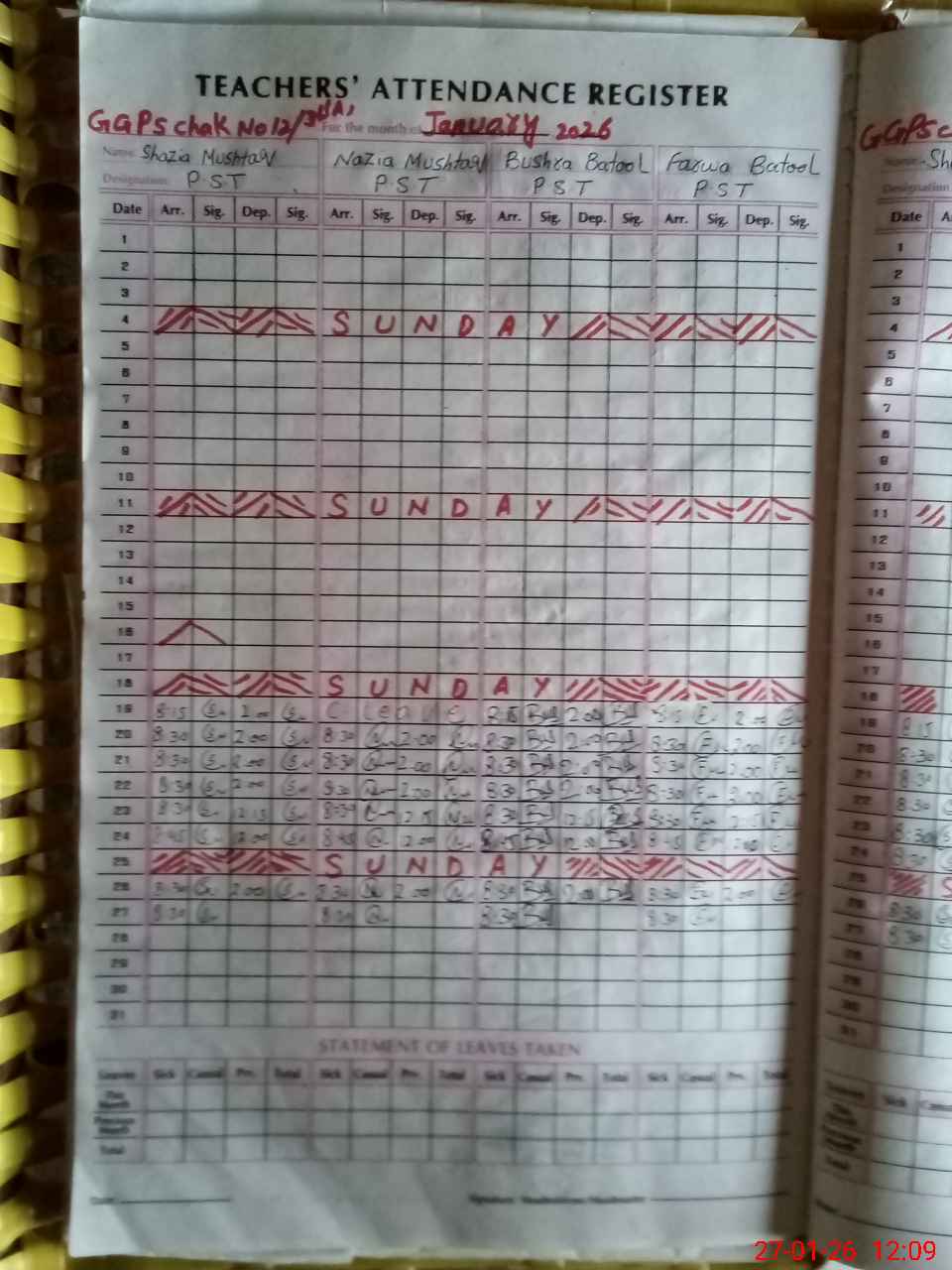 | EMIS Code: 33240473 | Name of School: GGPS CHAK NO. 12/3-L A | |||
